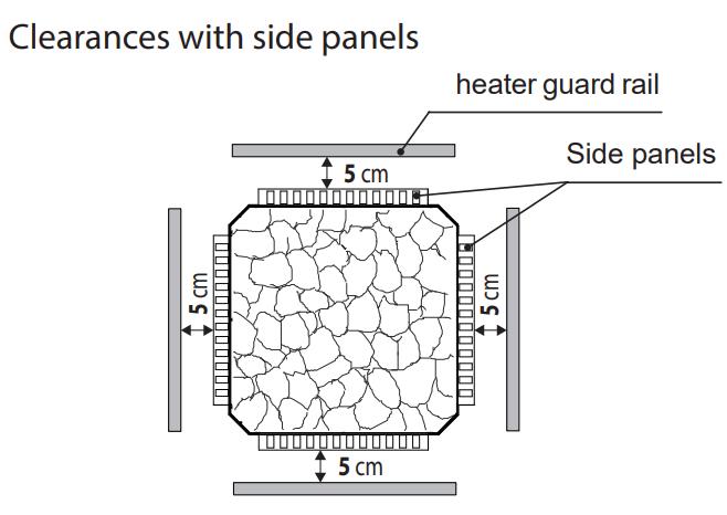 Модель можно дооснастить боковыми панелями (от 1 до 4 штук) в цвете антрацит или чёрный, а также защитным ограждением с креплениями. Электропечь оборудована встроенным блоком управления, расположенным на верхней части корпуса устройства. Он позволит регулировать температуру от 40 до 110 °C и устанавливать ограничение нагрева до 4 часов.