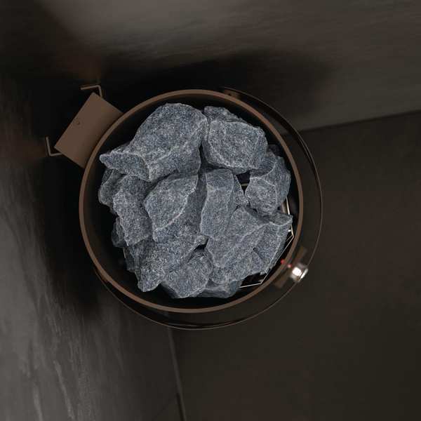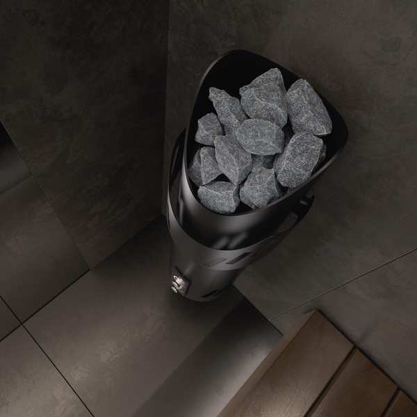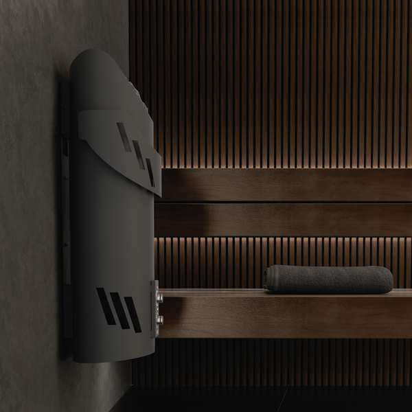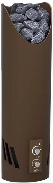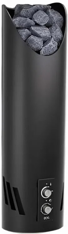 Устройство с настенным расположением. Модель с уникальной конструкцией: корпус диаметром вырезан из цельной трубы нержавеющей стали толщиной 4 мм с эллипсоидным срезом, придающим изделию необычную геометрию. Такое исполнение позволит разместить печь на стене парной или в углу. На выбор покупателя доступно 3 варианта отделки: антрацитово-жемчужный, чёрный матовый или красно-коричневый "ржавый мрамор".