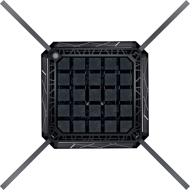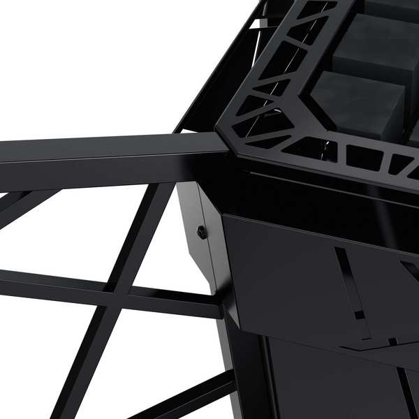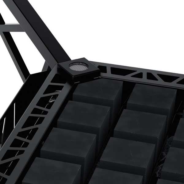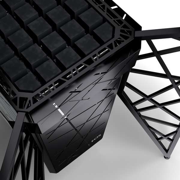 Устройство с напольным расположением. Модель с уникальной конструкцией в стиле хай-тек: конический корпус из нержавеющей стали в черном матовом цвете, украшенный прямыми линиями, парит над полом за счёт четырех ножек. Современное исполнение позволит разместить печь в центре парной или перед фасадом из стекла.