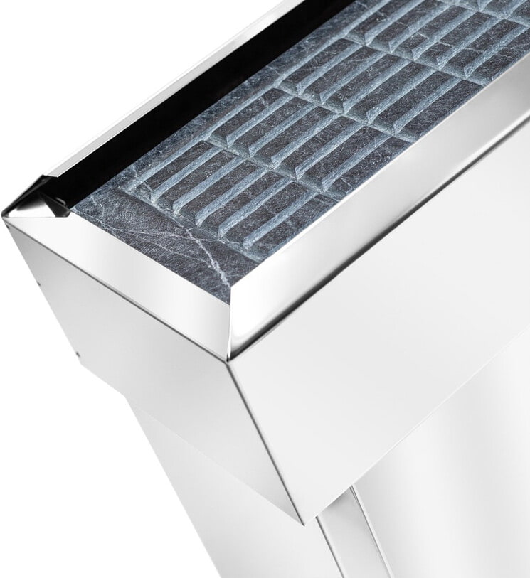 Каменка комплектуется горизонтальной плитой из натурального камня змеевик или талькохлорит. На плиту нанесены распилы, выступающие в качестве испарителя. Камень имеет высоту 6 см и весит ~ 15 кг. Более габаритные модели комплектуются двумя плитами с общим весом 30—36 кг. Материал хорошо нагревается и устойчив к перепадам температуры. Каждый из камней богат на минералы, которые выделяются при использовании печи.
