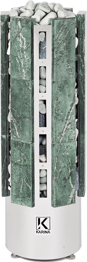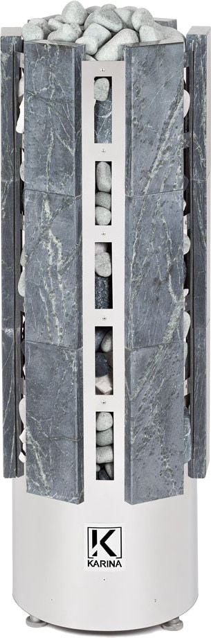 Электрические печи Karina представлены различными по внешнему виду и габаритам моделями: каменки могут быть в виде цилиндрической сетки, стильного прямоугольного кожуха без лишних деталей либо облицованы натуральным камнем. Кроме эстетического вида, облицовка защищает от жесткого инфракрасного излучения внутреннего разогретого электронагревательного блока и увеличивает теплоемкость. Материал отделки представлен плитами камня: амфиболит, змеевик, онего грин или талькохлорит.