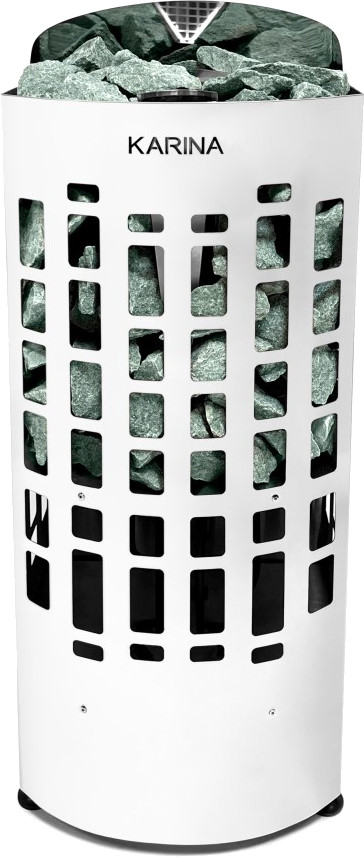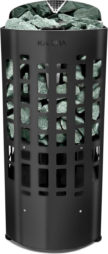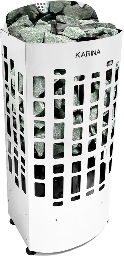 Электрические печи Karina представлены различными по внешнему виду и габаритам моделями: каменки могут быть в виде цилиндрической сетки, стильного прямоугольного кожуха без лишних деталей либо облицованы натуральным камнем. Кроме эстетического вида, облицовка защищает от жесткого инфракрасного излучения внутреннего разогретого электронагревательного блока и увеличивает теплоемкость. Материал отделки представлен плитами камня: амфиболит, змеевик, онего грин или талькохлорит.
