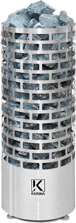 Электрические печи Karina представлены различными по внешнему виду и габаритам моделями: каменки могут быть в виде цилиндрической сетки, стильного прямоугольного кожуха без лишних деталей либо облицованы натуральным камнем. Кроме эстетического вида, облицовка защищает от жесткого инфракрасного излучения внутреннего разогретого электронагревательного блока и увеличивает теплоемкость. Материал отделки представлен плитами камня: амфиболит, змеевик, онего грин или талькохлорит.