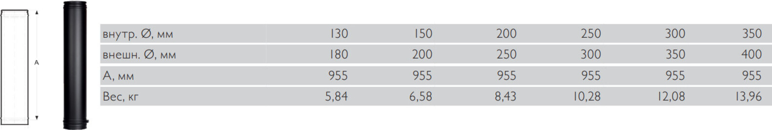 Элемент высотой 1000 мм состоит из двух труб (внешней и внутренней), между которыми располагается пожаробезопасный, термостойкий утеплитель. Двухконтурная труба ("сэндвич") является одной из основных частей дымоотводной системы. Устанавливается на прямых участках вывода продуктов горения, обеспечивая требуемую высоту.