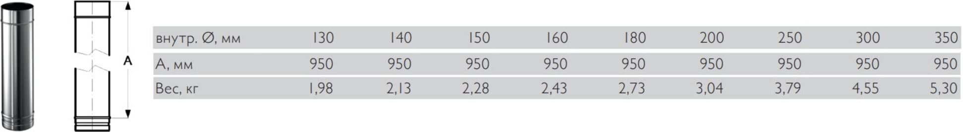 Изделие высотой 1000 мм является одной из основных частей дымоотводной системы. Устанавливается на прямых участках вывода продуктов горения, обеспечивая требуемую высоту.