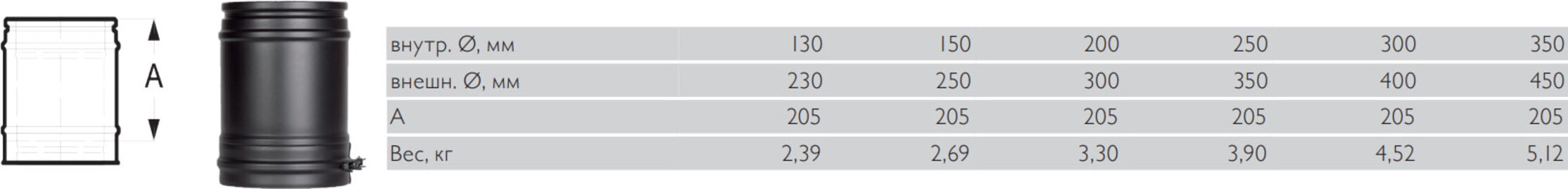 Элемент высотой 250 мм состоит из двух труб (внешней и внутренней), между которыми располагается пожаробезопасный, термостойкий утеплитель. Двухконтурная труба ("сэндвич") является одной из основных частей дымоотводной системы. Устанавливается на прямых участках вывода продуктов горения, обеспечивая требуемую высоту.