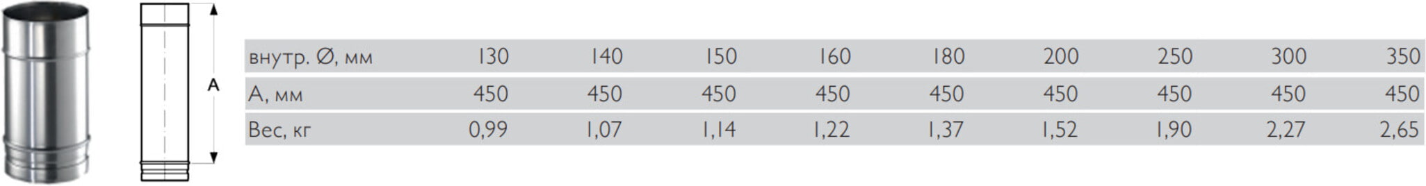Изделие высотой 500 мм является одной из основных частей дымоотводной системы. Устанавливается на прямых участках вывода продуктов горения, обеспечивая требуемую высоту.