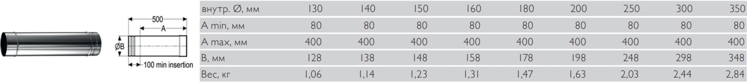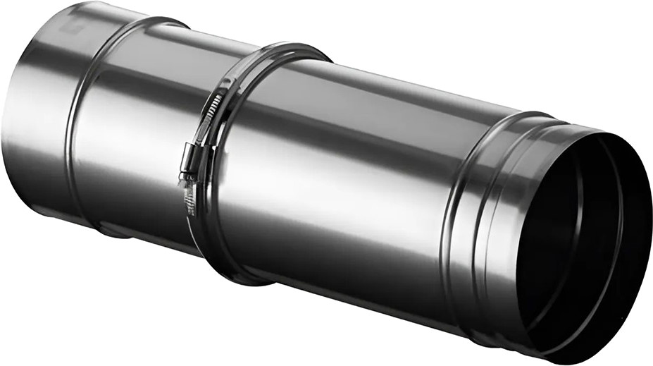 Используется деталь для подгонки длины дымоотводной системы за счет возможности регулирования размера до 500 мм. Устанавливается в элементы трубы 1000 или 500 мм. Хомут входит в комплект.