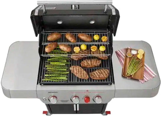 Газовый гриль Weber Genesis E-325s (Вебер Генезис E-325с) — устройство для тех, кто ценит комфорт и удобство в приготовлении пищи на огне. Модель оснащена системой гриля GS4 с тремя мощными горелками. Они отличаются равномерным распределением тепла, плавной регулировкой клапанов и электрическим поджигом Infinity.
