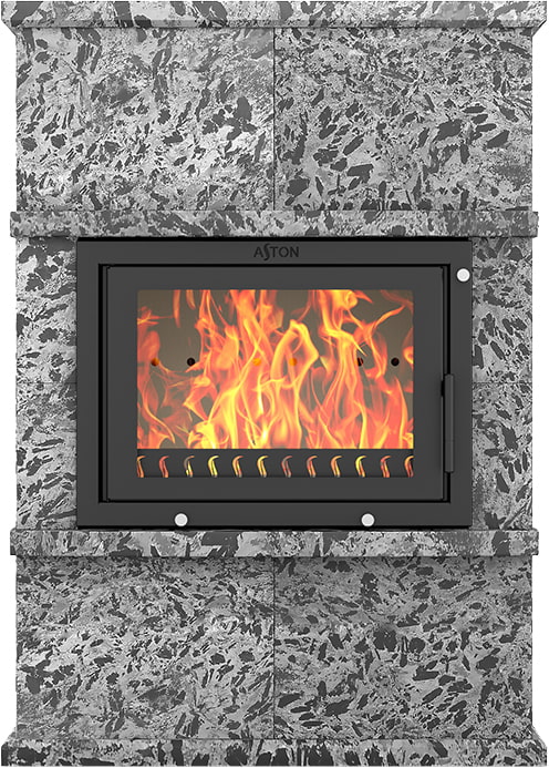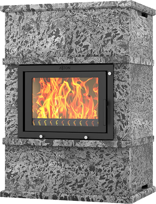 Камины Aston — это полноценные теплоаккумулирующие устройства, состоящие из каминной топки и адаптированной под неё облицовки. Материалом может выступать натуральный талькохлорит, амфиболит или пироксенит элит. Толщина облицовки — 40-50 мм. Каждый из этих камней способен долго, медленно и равномерно отдавать тепло в комнату даже после прекращения добавления дров, а индивидуальный рисунок дополнит любой интерьер.