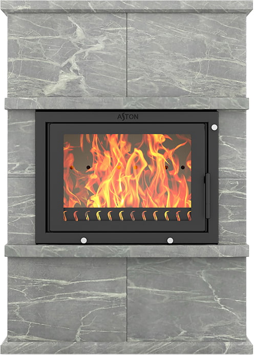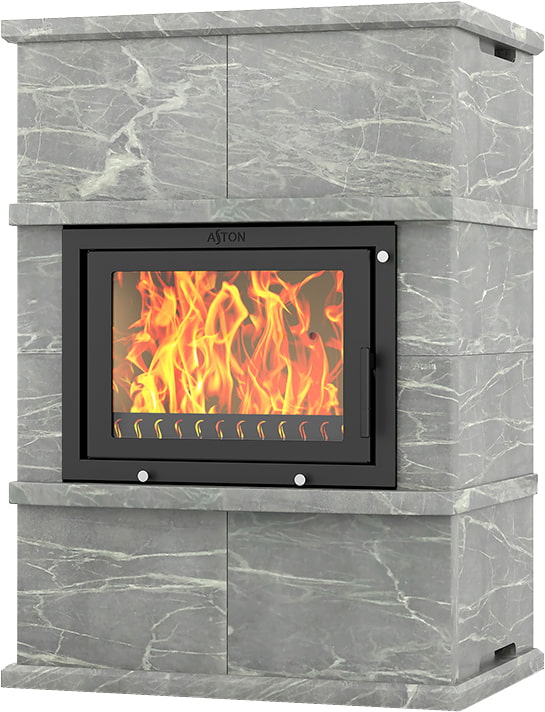 Камины Aston — это полноценные теплоаккумулирующие устройства, состоящие из каминной топки и адаптированной под неё облицовки. Материалом может выступать натуральный талькохлорит, амфиболит или пироксенит элит. Толщина облицовки — 40-50 мм. Каждый из этих камней способен долго, медленно и равномерно отдавать тепло в комнату даже после прекращения добавления дров, а индивидуальный рисунок дополнит любой интерьер.