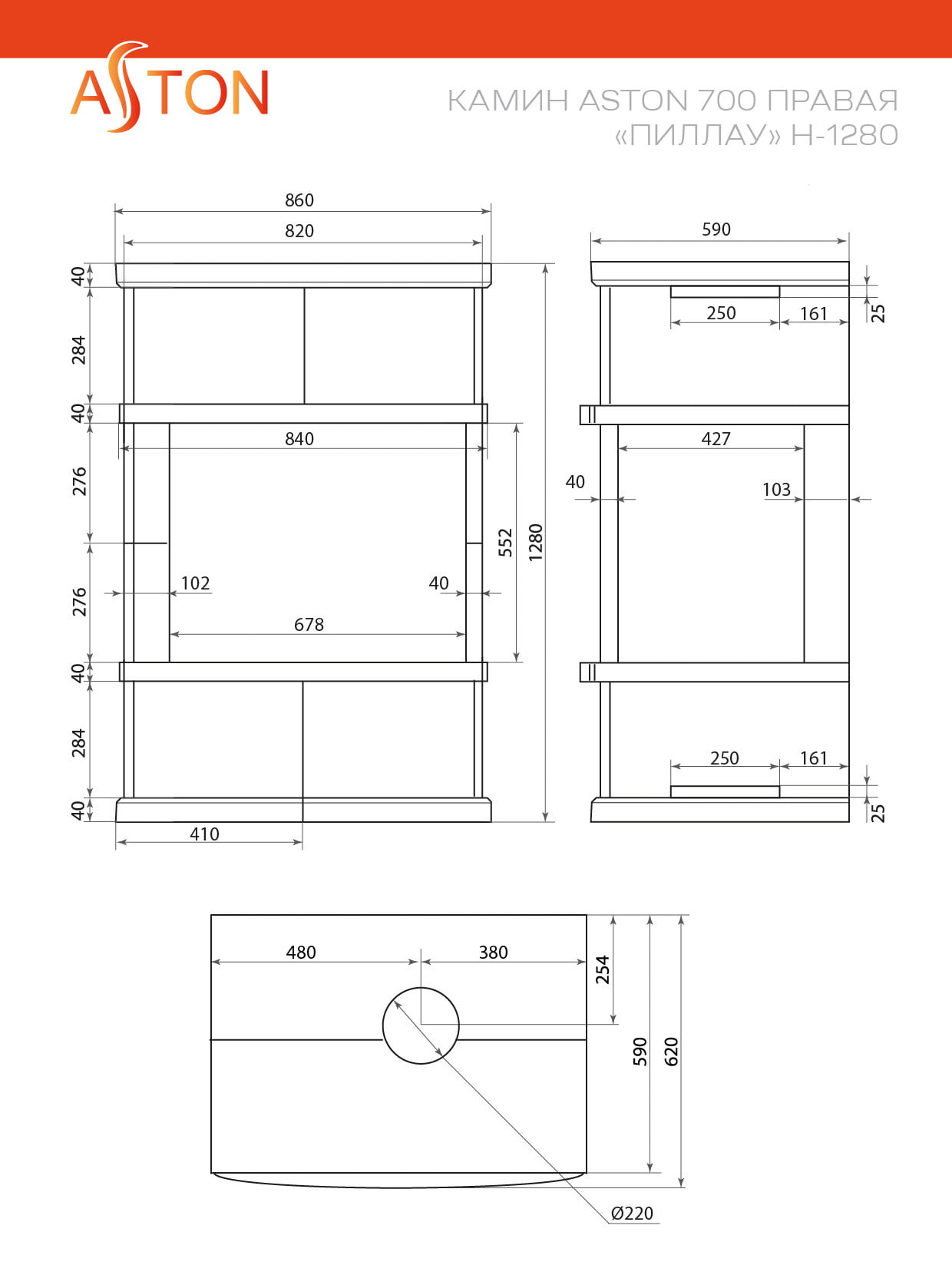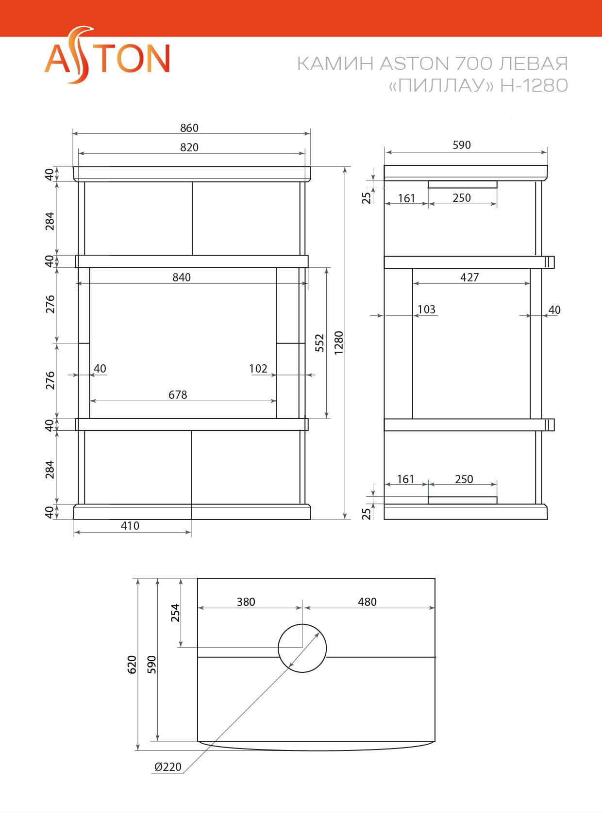 Камин Астон 700 Л/П Пиллау H-1280 Талькохлорит
