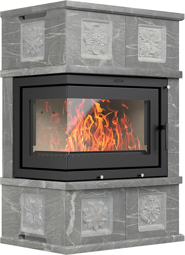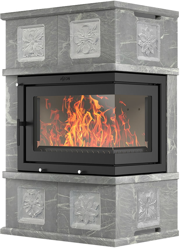 Камины Aston — это полноценные теплоаккумулирующие устройства, состоящие из каминной топки и адаптированной под неё облицовки. Материалом может выступать натуральный талькохлорит, амфиболит или пироксенит элит. Толщина облицовки — 40-50 мм. Каждый из этих камней способен долго, медленно и равномерно отдавать тепло в комнату даже после прекращения добавления дров, а индивидуальный рисунок дополнит любой интерьер.