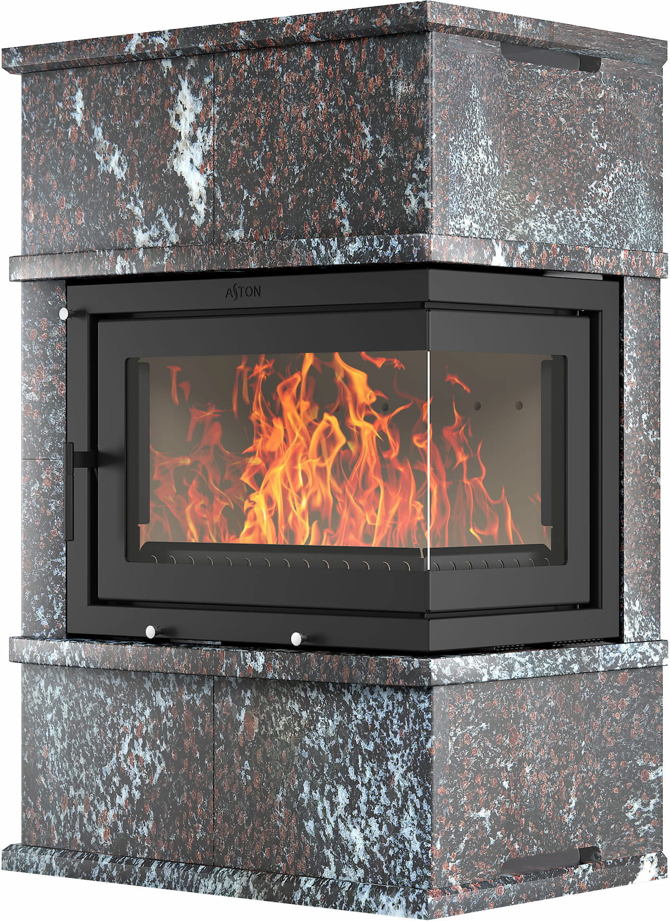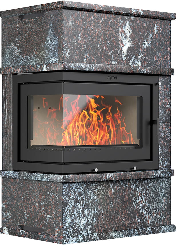 Камины Aston — это полноценные теплоаккумулирующие устройства, состоящие из каминной топки и адаптированной под неё облицовки. Материалом может выступать натуральный талькохлорит, амфиболит или пироксенит элит. Толщина облицовки — 40-50 мм. Каждый из этих камней способен долго, медленно и равномерно отдавать тепло в комнату даже после прекращения добавления дров, а индивидуальный рисунок дополнит любой интерьер.