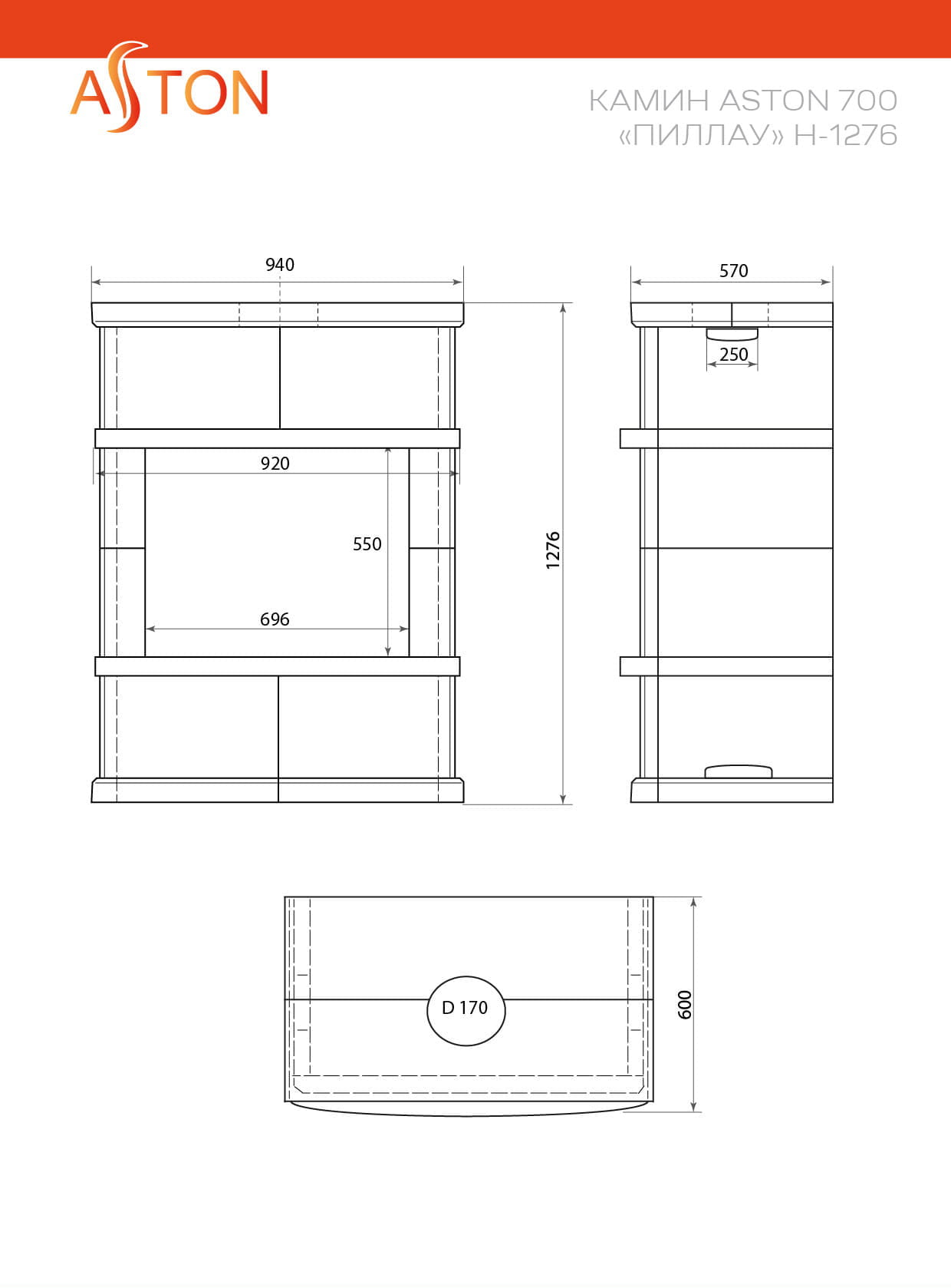 Камин Астон 700 Пиллау Талькохлорит (Aston 700 Pillau Талькохлорит) — это полноценное теплоаккумулирующее устройство, состоящее из каминной топки "Астон 700" и адаптированной под неё облицовки "Пиллау" высотой 1276 мм.