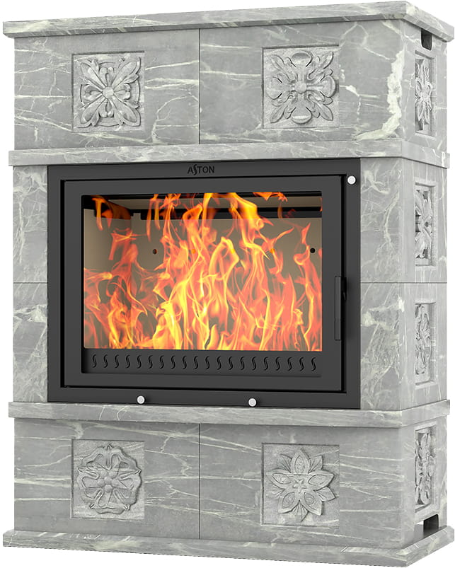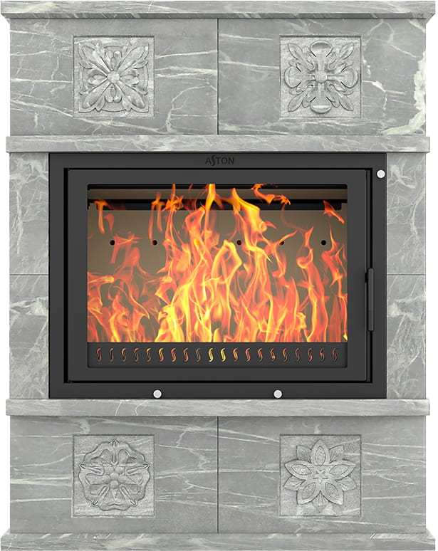 Камины Aston — это полноценные теплоаккумулирующие устройства, состоящие из каминной топки и адаптированной под неё облицовки. Материалом может выступать натуральный талькохлорит, амфиболит или пироксенит элит. Толщина облицовки — 40-50 мм. Каждый из этих камней способен долго, медленно и равномерно отдавать тепло в комнату даже после прекращения добавления дров, а индивидуальный рисунок дополнит любой интерьер.