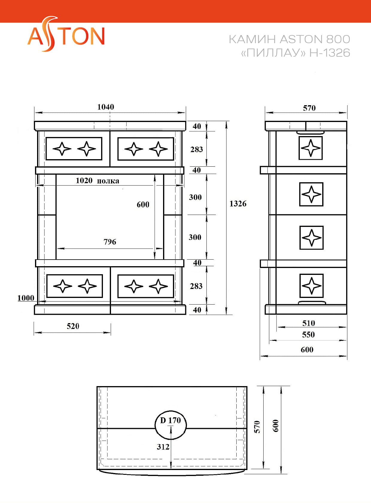 Камин Астон 800 Пиллау Талькохлорит / Пироксенит (Aston 800 "Pillau" Талькохлорит) — это полноценное теплоаккумулирующее устройство, состоящее из каминной топки "Астон 800" и адаптированной под неё облицовки "Пиллау" высотой 1326 мм.