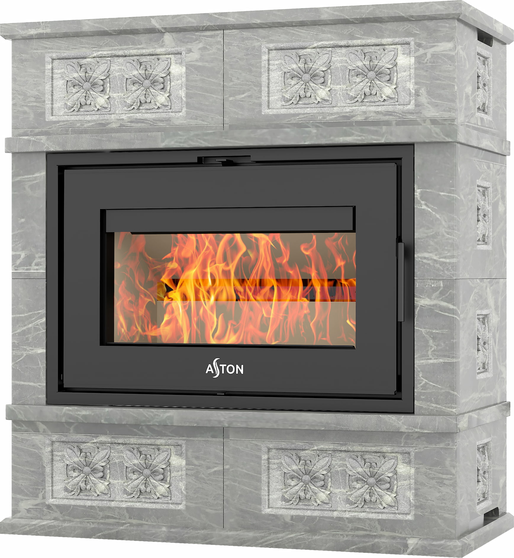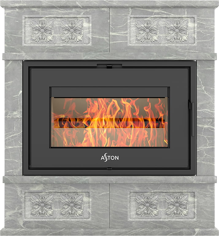 Камины Aston — это полноценные теплоаккумулирующие устройства, состоящие из каминной топки и адаптированной под неё облицовки. Материалом может выступать натуральный талькохлорит, амфиболит или пироксенит элит. Толщина облицовки — 40-50 мм. Каждый из этих камней способен долго, медленно и равномерно отдавать тепло в комнату даже после прекращения добавления дров, а индивидуальный рисунок дополнит любой интерьер.