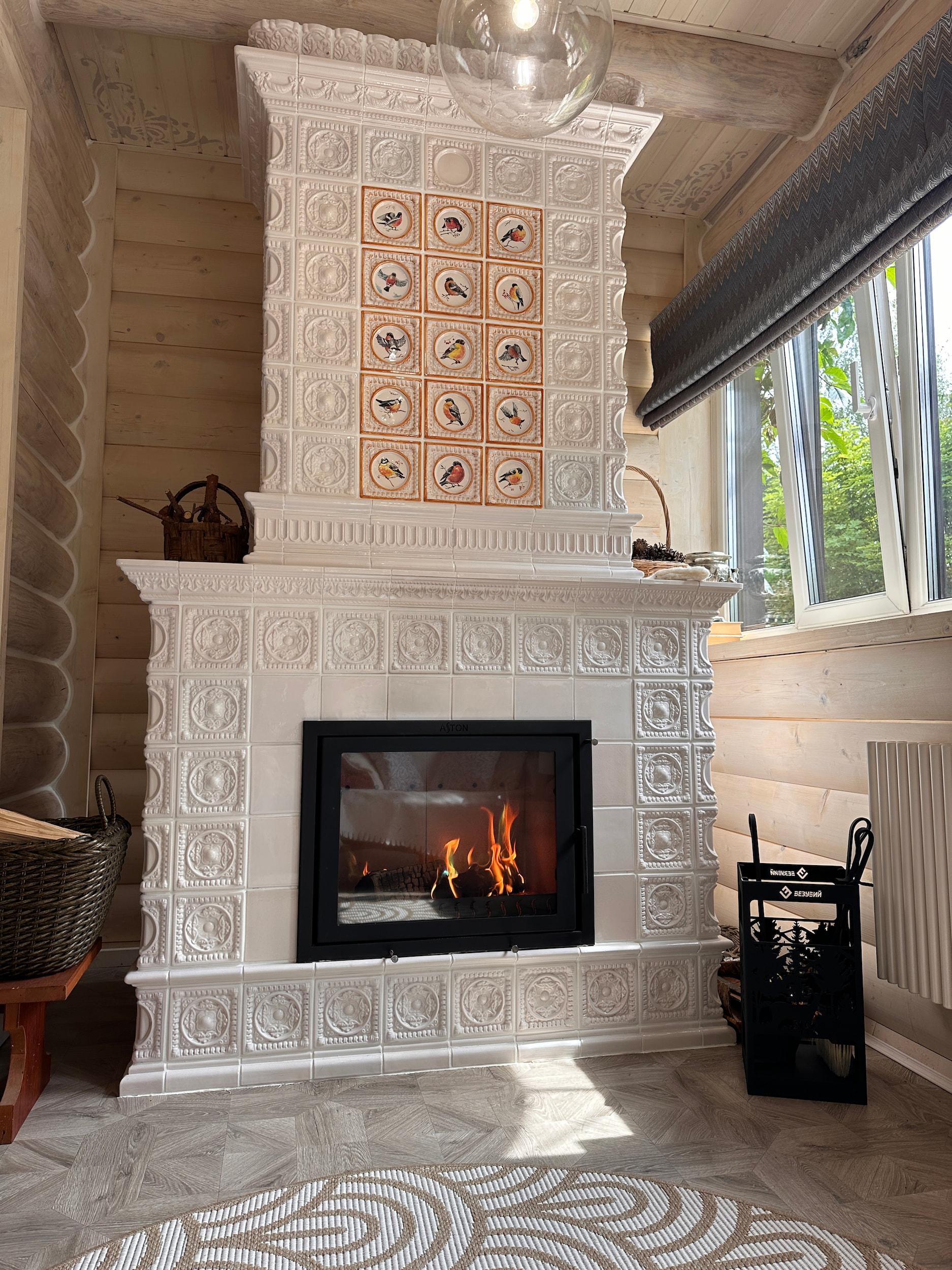 Внутри топка футерована вермикулитовыми плитами толщиной 30 мм. На дне установлен чугунный колосник с расположенным под ним зольным ящиком. Очаг оснащён системой вторичного дожига газов, улучшающей эффективность горения, поворотным шибером и высоким дымосборником. Внутри дымосборника размещены три теплообменные трубки, которые усиливают конвекцию изделия.