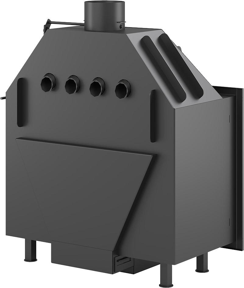 Для отвода продуктов сгорания необходим дымоход диаметром 150 мм, а для облегчения монтажа предусмотрены регулируемые по высоте ножки.