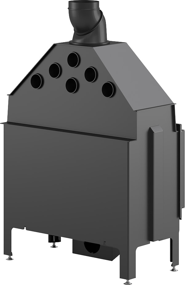 Внутри топка футерована керамобетоном, устойчивым к температуре до 1000 °C. На дне установлен наклонный чугунный колосник с расположенным под ним зольным ящиком. Очаг оснащён системой вторичного дожига газов, улучшающей эффективность горения, системой "Чистое стекло" и высоким дымосборником. Внутри дымосборника размещены шесть теплообменных трубок, которые усиливают конвекцию изделия.