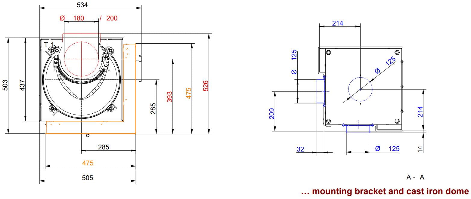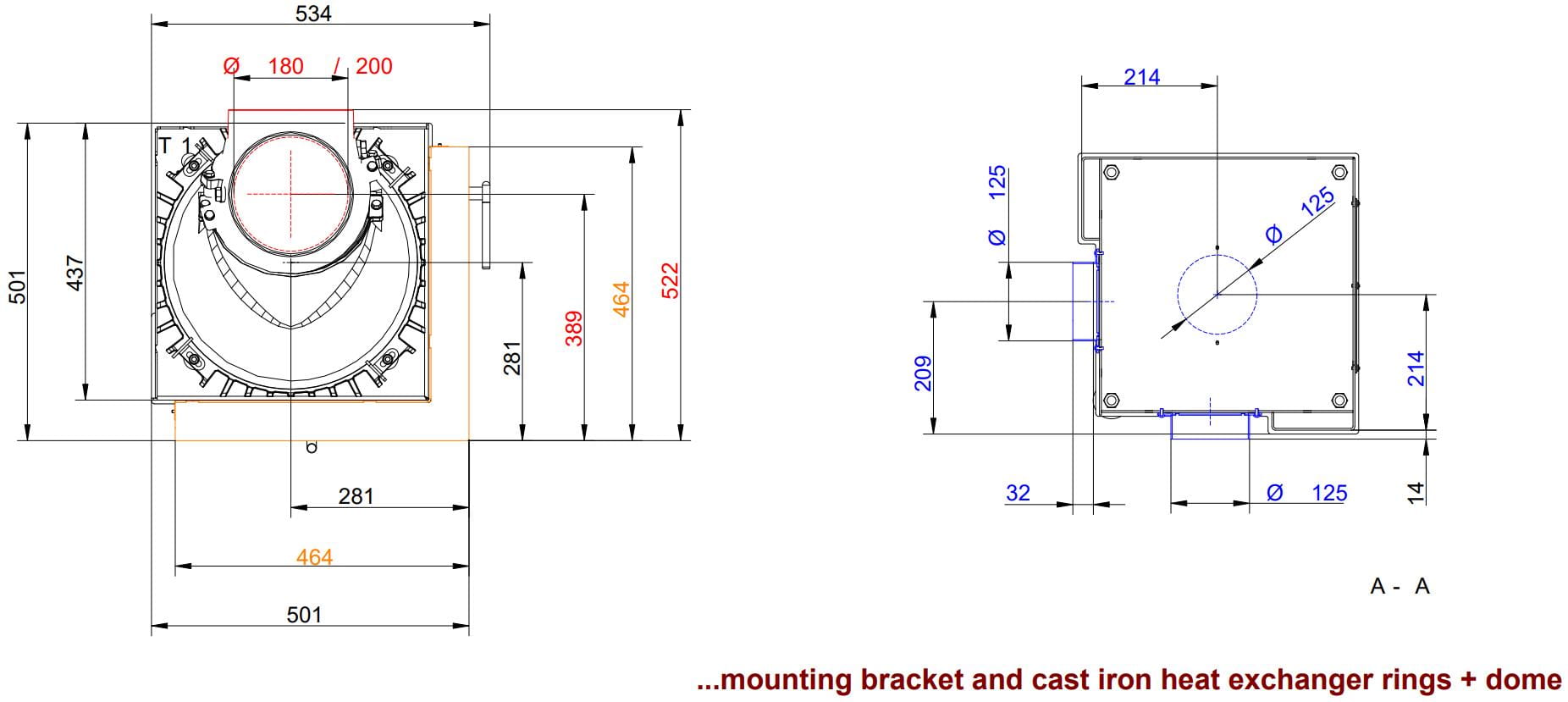 - Чугунный дымосборник — не предназначен для прямого подключения дымохода, используется только в сочетании с системами MSS и GNF — объёмными керамическими или чугунными теплонакопительными модулями.