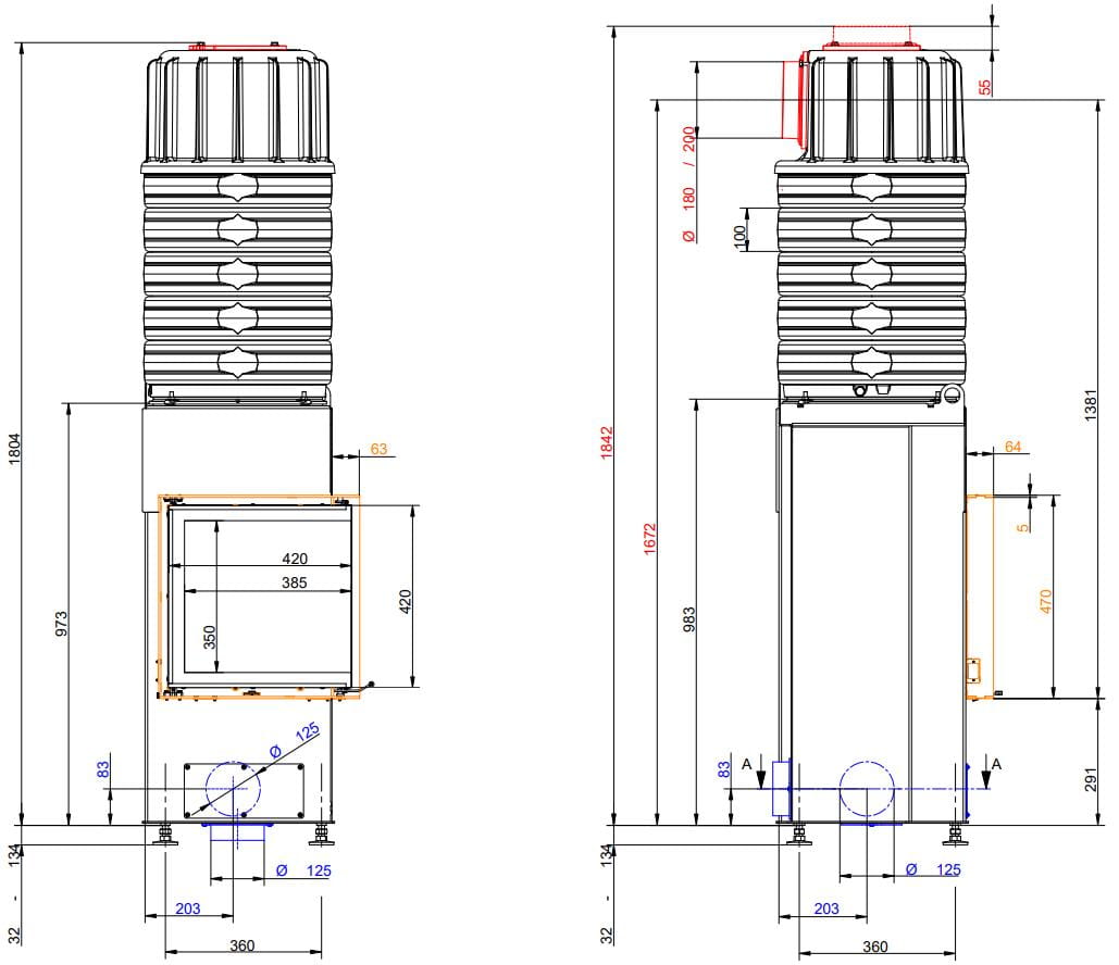 | Диаметр дымохода (мм) | 200 | 180 | 200 | 180 | 180 |