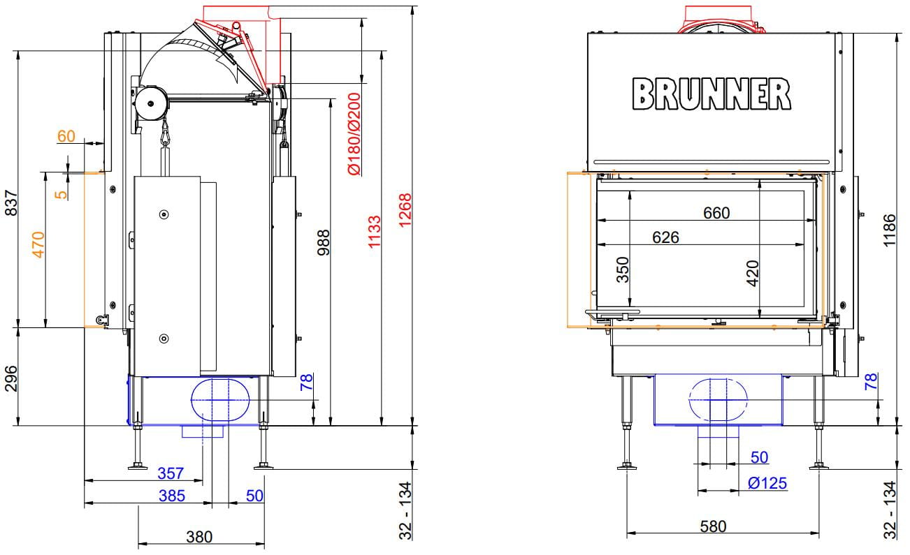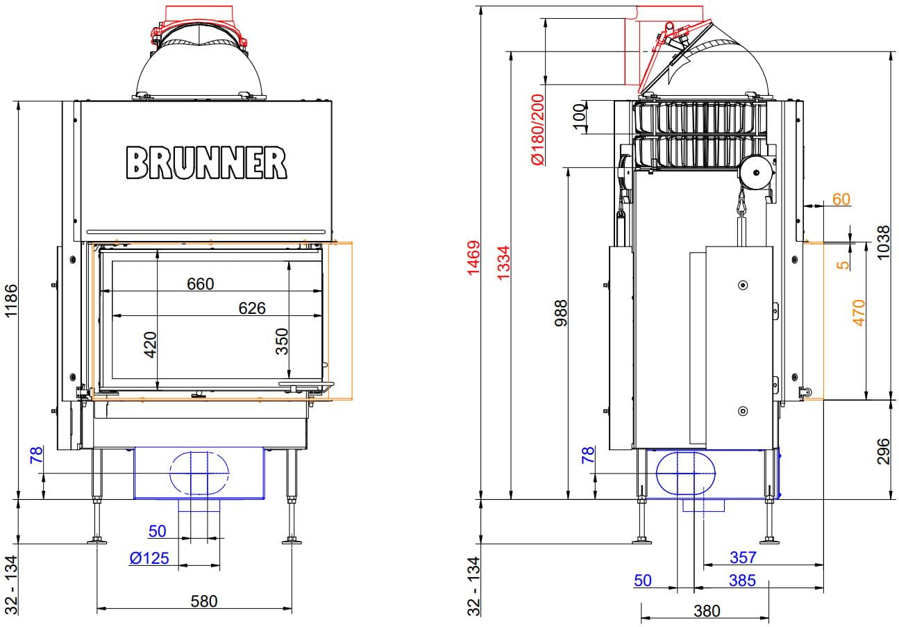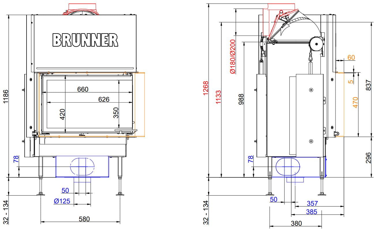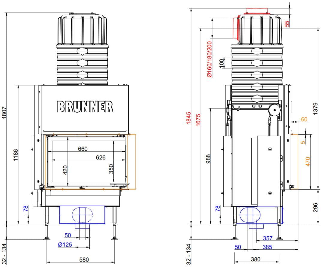 Также все модели Brunner имеют возможность подвода воздуха на горение извне (из соседнего помещения или улицы).