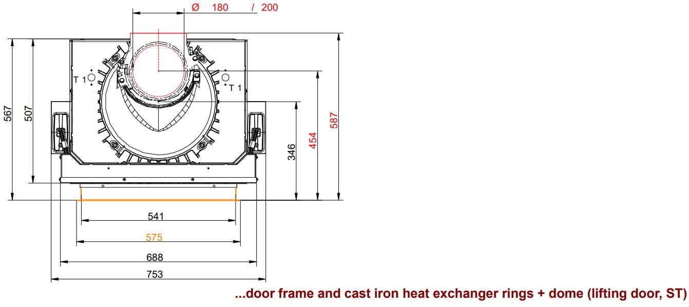 - Чугунный дымосборник — не предназначен для прямого подключения дымохода, используется только в сочетании с системами MSS и GNF — объёмными керамическими или чугунными теплонакопительными модулями.