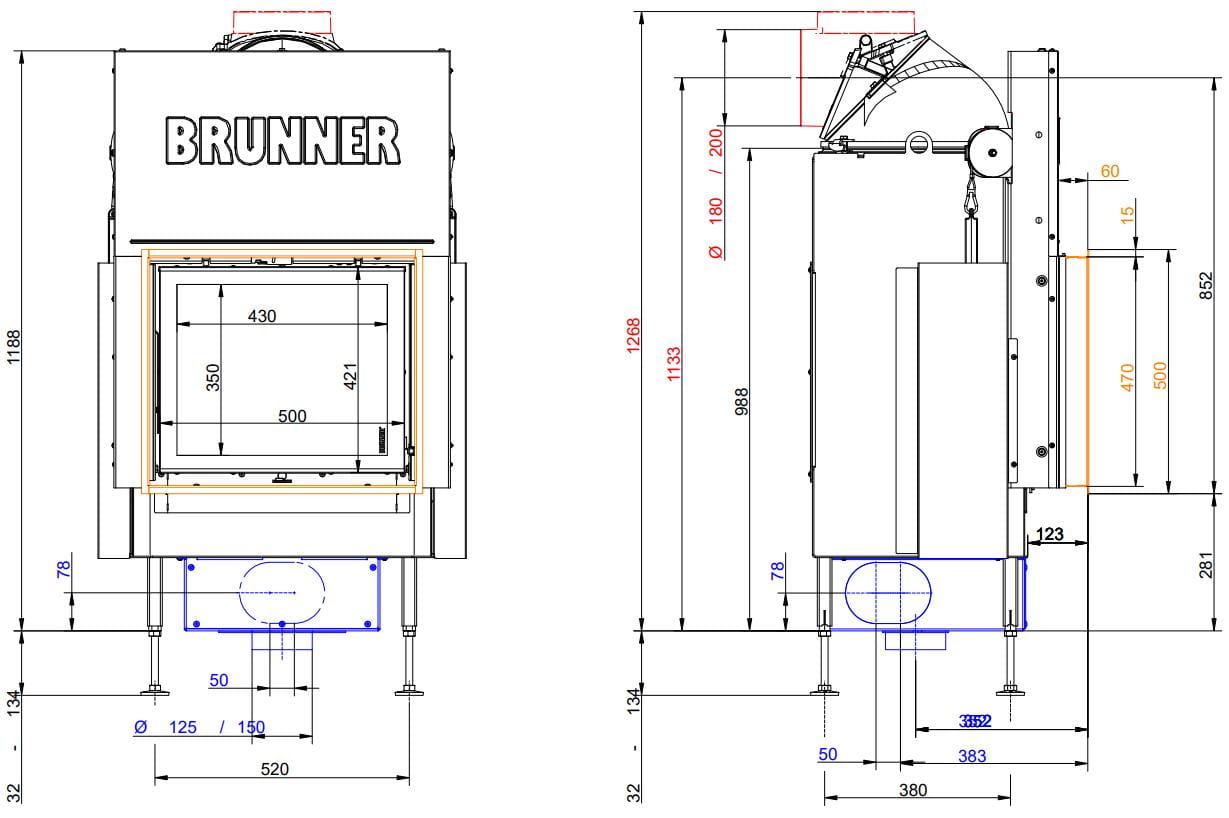 Также все модели Brunner имеют возможность подвода воздуха на горение извне (из соседнего помещения или улицы).
