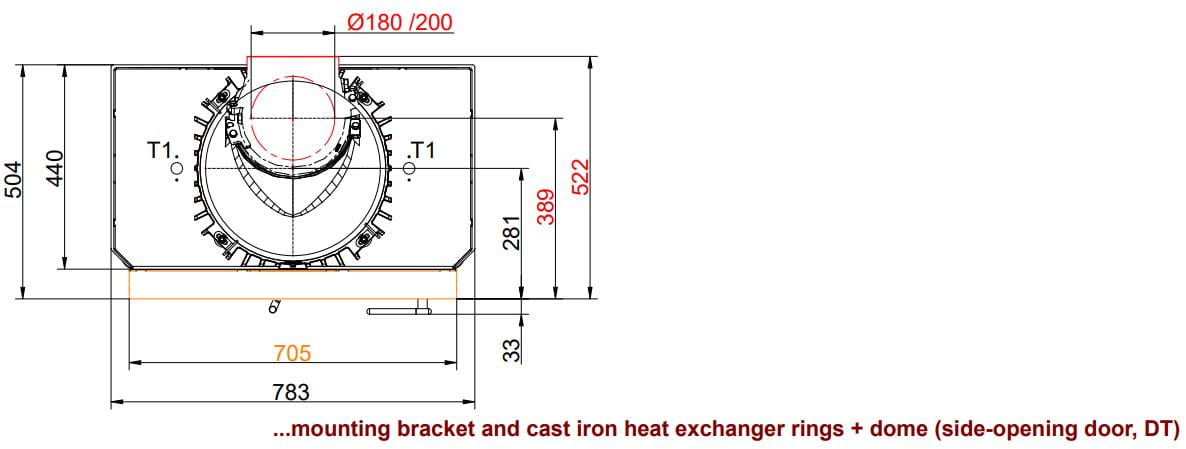 - Чугунный дымосборник с теплообменными кольцами — быстрый нагрев и быстрая отдача тепла в помещение. Высокая мощность конвекции в небольшом пространстве.