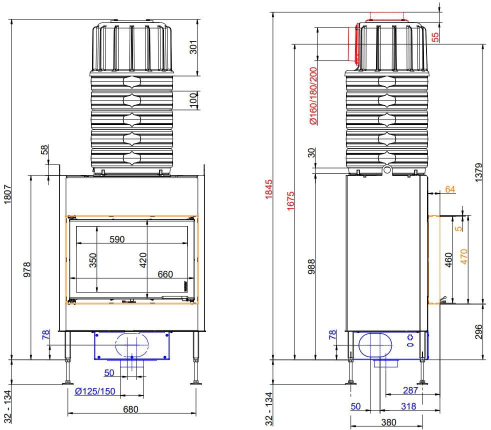 | Диаметр дымохода (мм) | 200 | 180 | 200 | 180 | 180 |