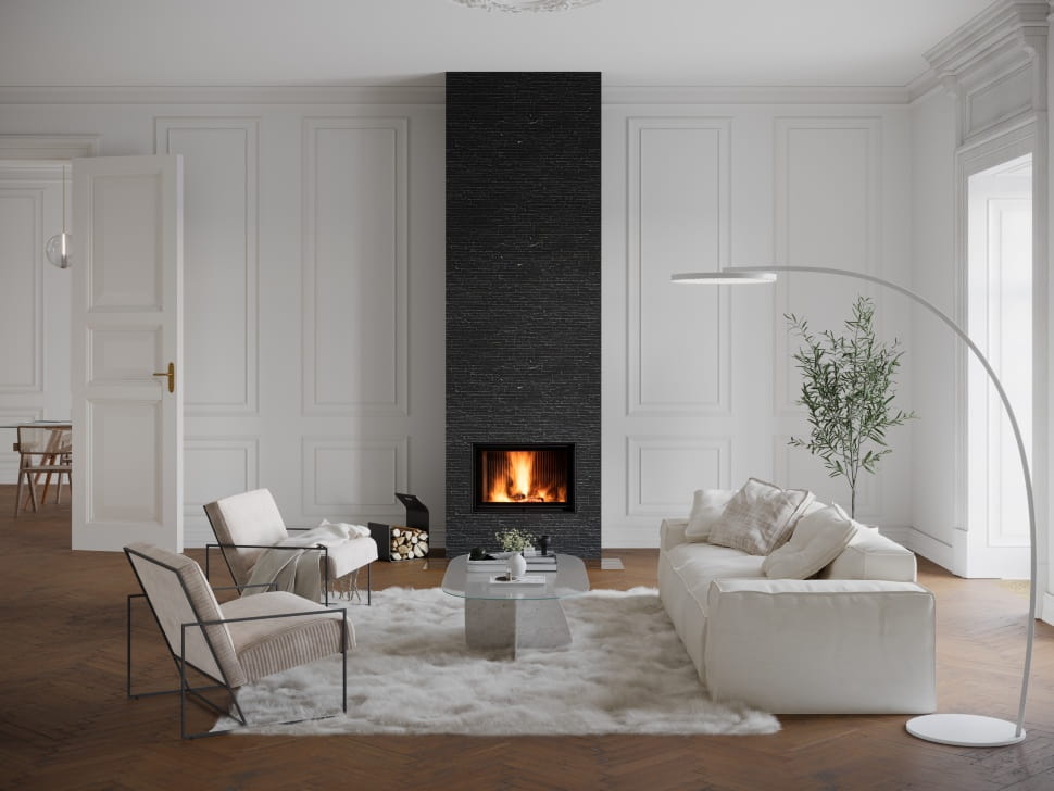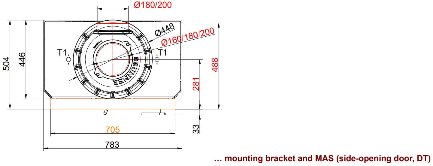В серии топок Brunner BKH 5.0 flat покупатель может выбрать обрамление двери по своему усмотрению. В случае двери с подъёмным механизмом — чёрная монтажная рама глубиной 60 мм, что делает примыкание топки к облицовке практически незаметным, или дверная чёрная рама, значительно выступающая по периметру. Если приобретается топка с боковым открыванием — выбор между монтажным кронштейном и чёрной дверной рамой.