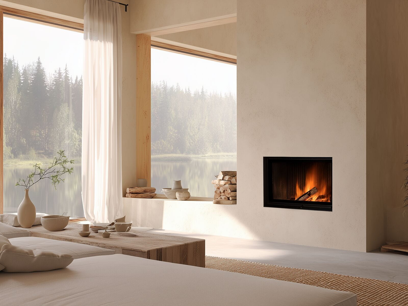 Абсолютное большинство тепловых лучей проходит через керамическое стекло в помещение. Расстояние для размещения мебели или горючих элементов от топки должно составлять не менее 120 см.