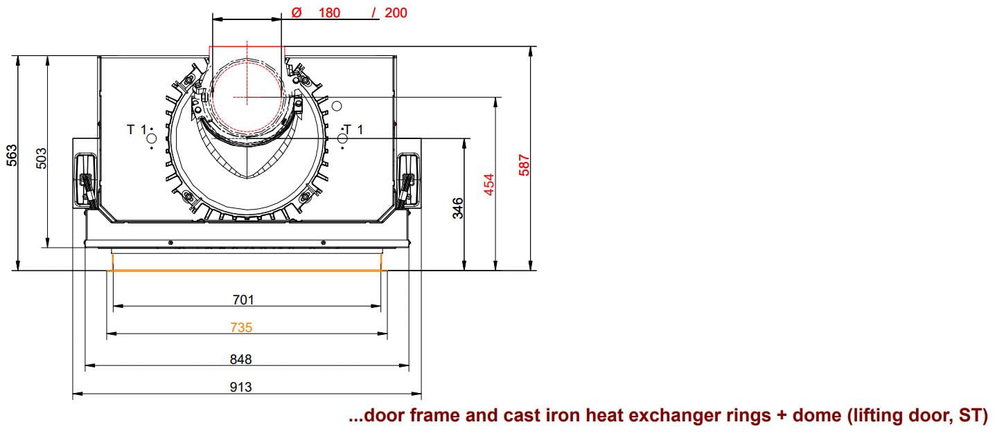 - Чугунный дымосборник — не предназначен для прямого подключения дымохода, используется только в сочетании с системами MSS и GNF — объёмными керамическими или чугунными теплонакопительными модулями.
