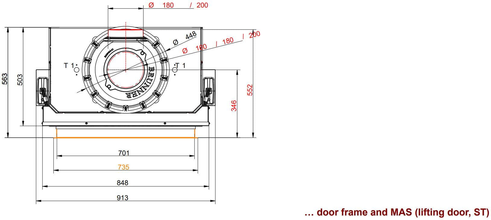В серии топок Brunner BKH 5.0 flat покупатель может выбрать обрамление двери по своему усмотрению. В случае двери с подъёмным механизмом — чёрная монтажная рама глубиной 60 мм, что делает примыкание топки к облицовке практически незаметным, или дверная чёрная рама, значительно выступающая по периметру. Если приобретается топка с боковым открыванием — выбор между монтажным кронштейном и чёрной дверной рамой.