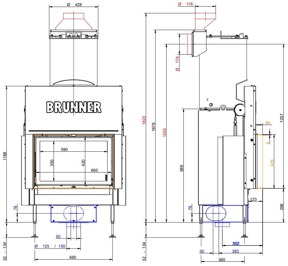 Каминная топка Brunner BKH 5.0 flat 42-66 ST (Бруннер БКХ 5.0 флат 42-66 ST)