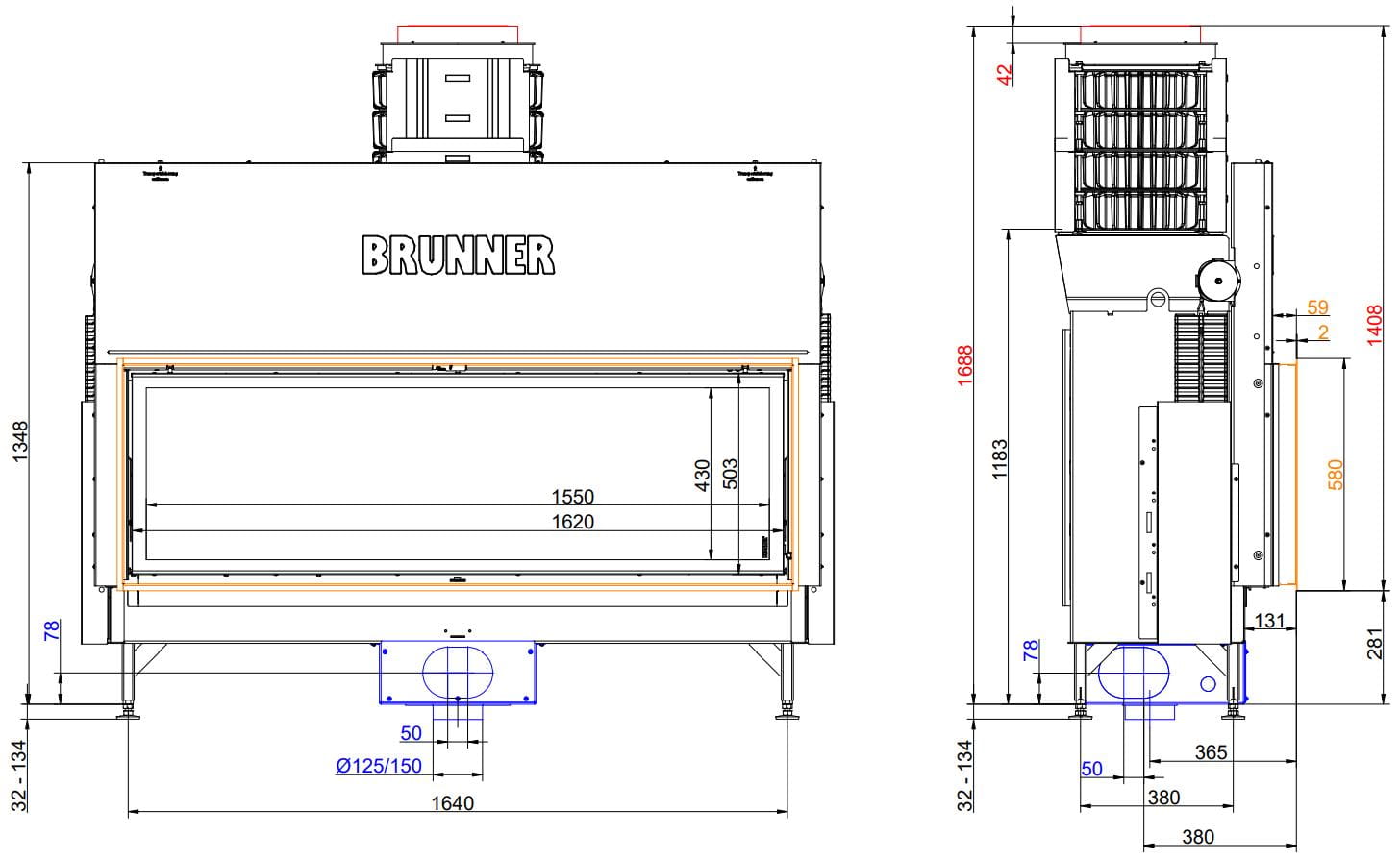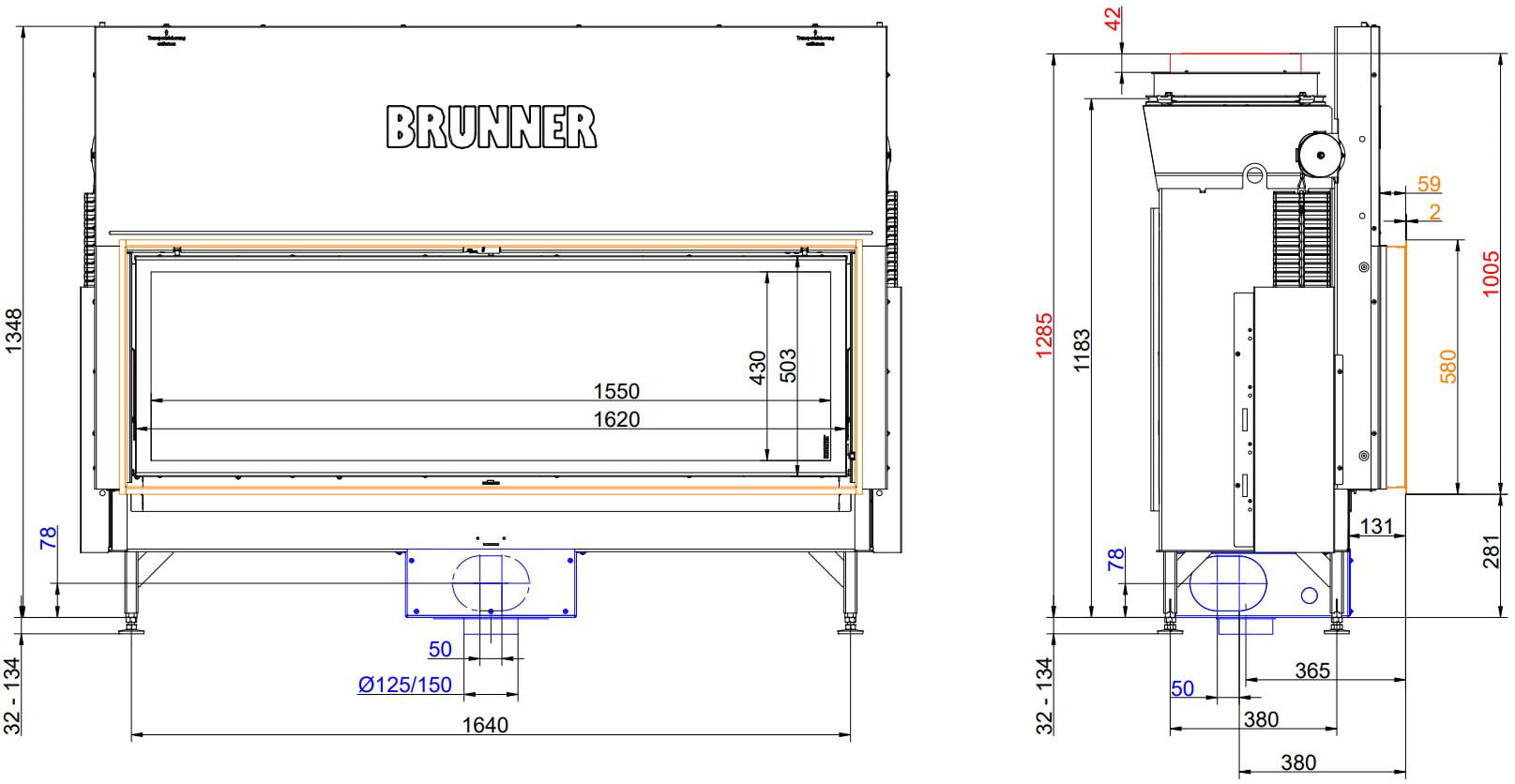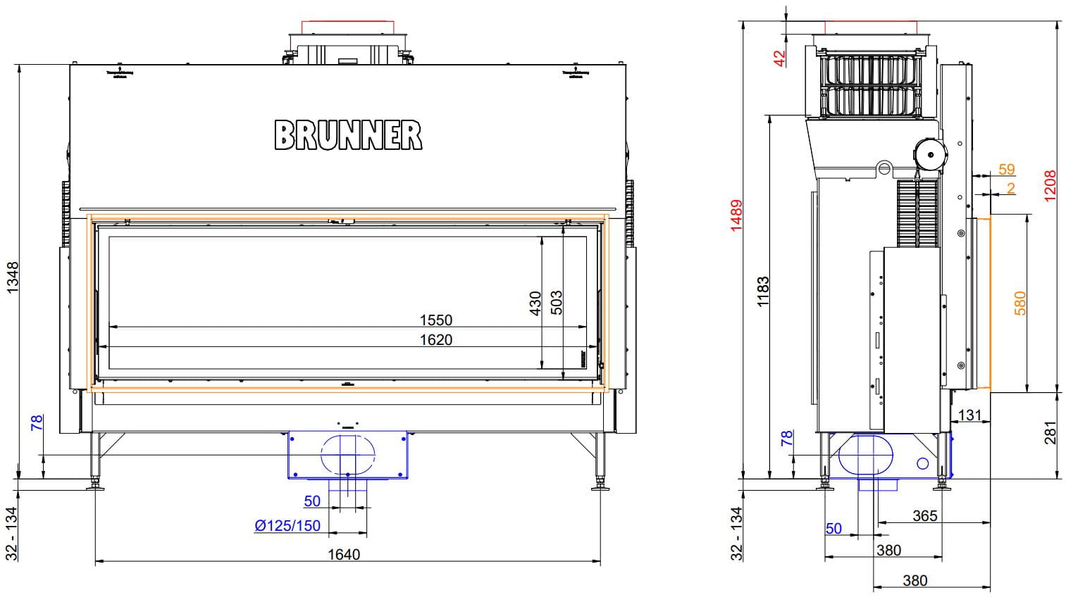 Каминная топка Brunner BKH 5.0 Flat 50-162 ST (Бруннер БКХ 5.0 Флат 50-162 ST)