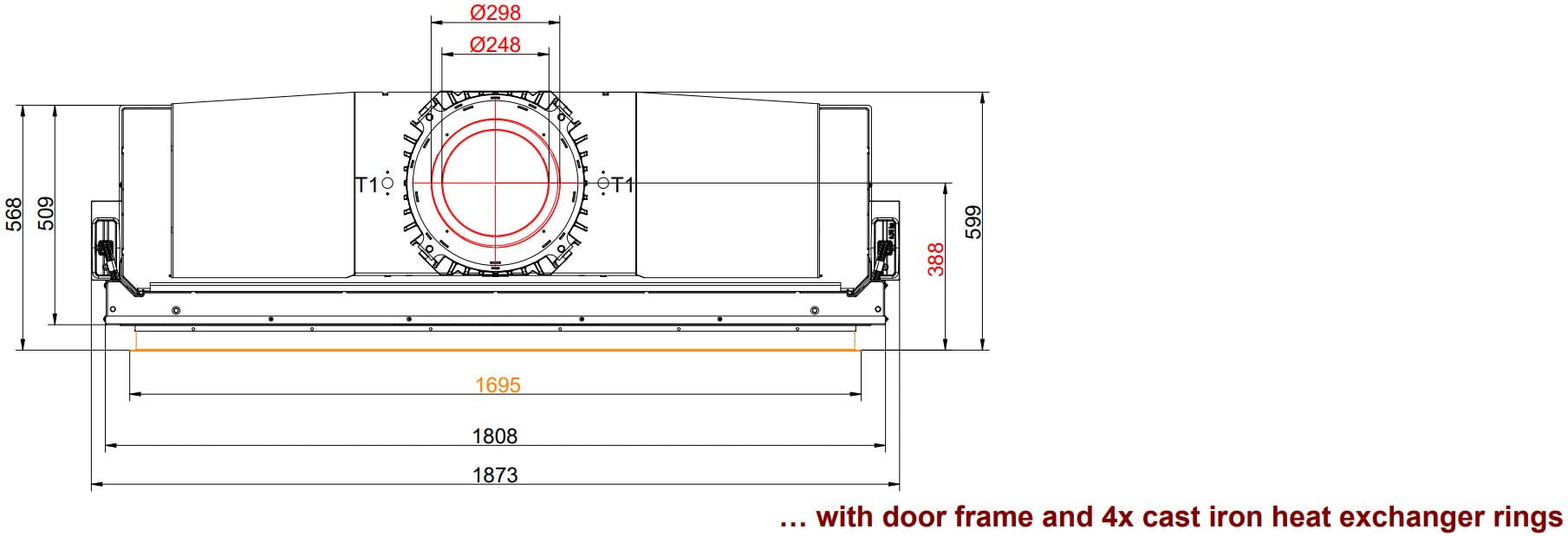 - Чугунный дымосборник с теплообменными кольцами — быстрый нагрев и быстрая отдача тепла в помещение. Высокая мощность конвекции в небольшом пространстве. Доступно два варианта варианта: с двумя или четырьмя кольцами.