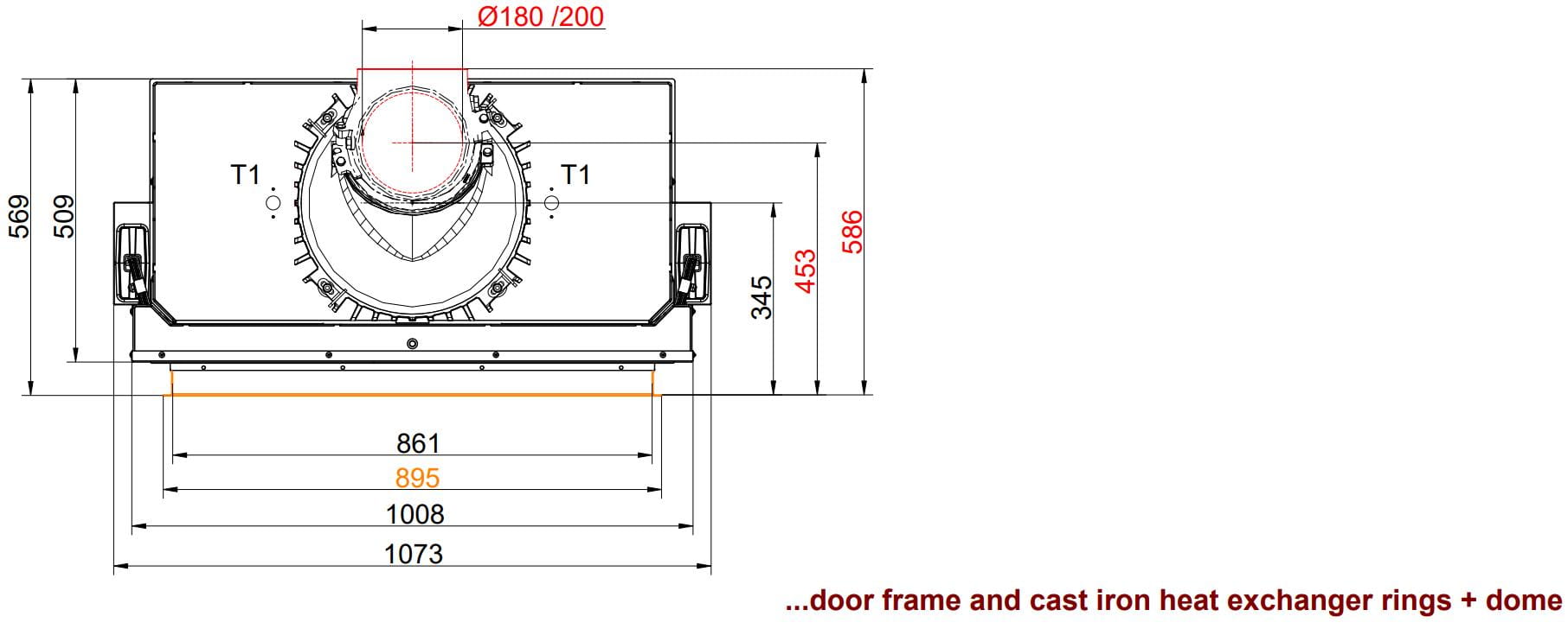 - Чугунный дымосборник с теплообменными кольцами — быстрый нагрев и быстрая отдача тепла в помещение. Высокая мощность конвекции в небольшом пространстве.