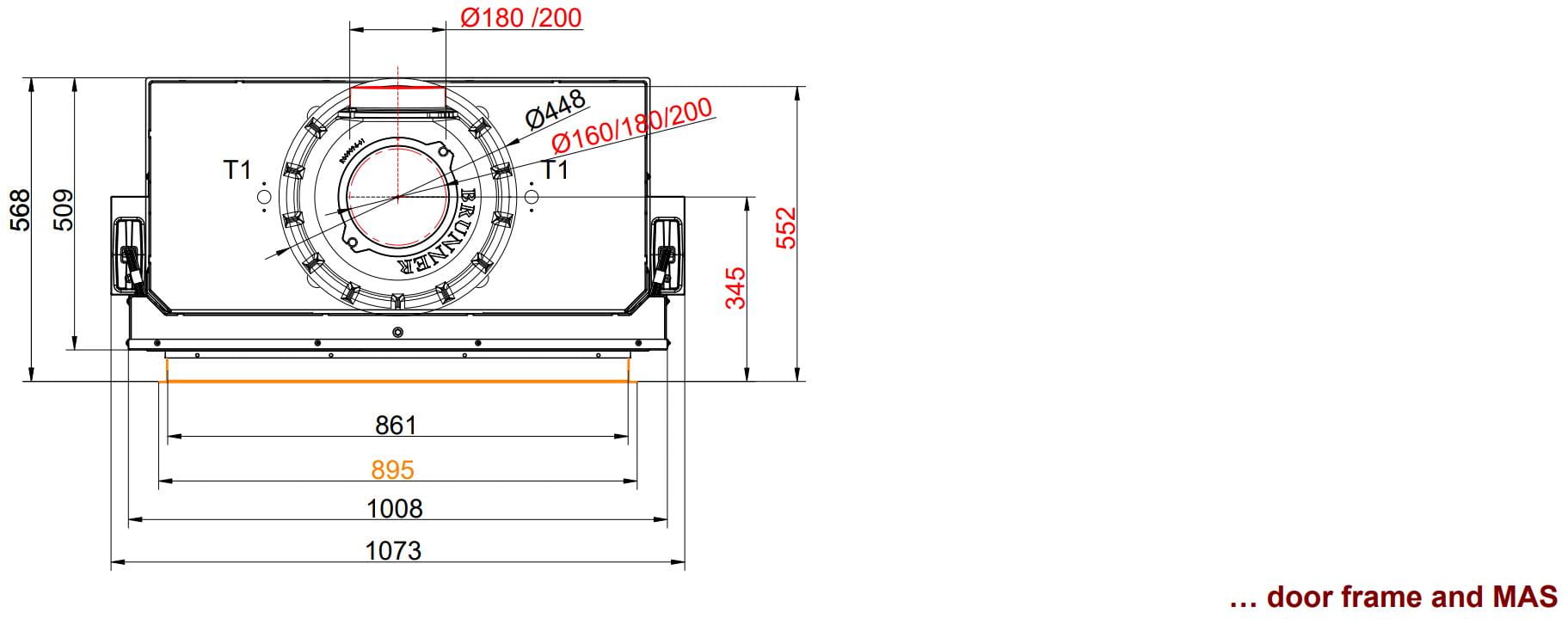 В серии топок Brunner BKH 5.0 flat покупатель может выбрать обрамление двери по своему усмотрению. В случае двери с подъёмным механизмом — чёрная монтажная рама глубиной 60 мм, что делает примыкание топки к облицовке практически незаметным, или дверная чёрная рама, значительно выступающая по периметру. Если приобретается топка с боковым открыванием — выбор между монтажным кронштейном и чёрной дверной рамой.