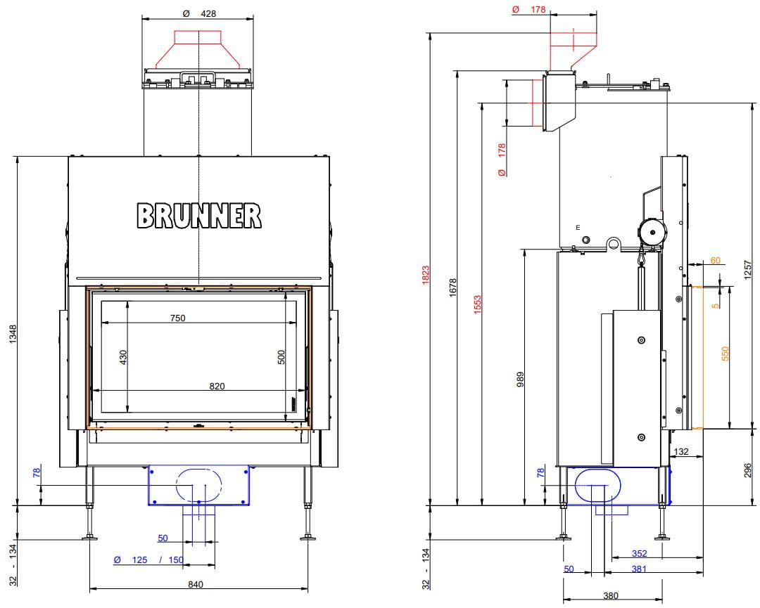 Также все модели Brunner имеют возможность подвода воздуха на горение извне (из соседнего помещения или улицы).
