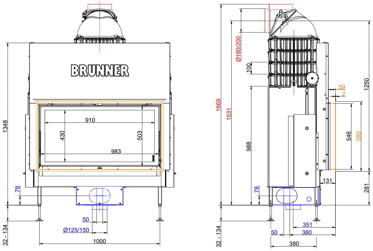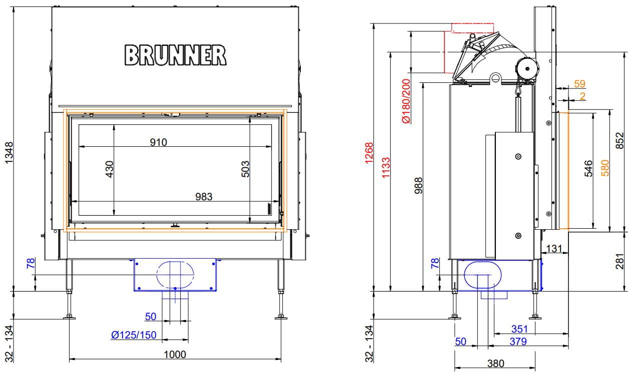 Каминная топка Brunner BKH 5.0 Flat 50-98 ST (Бруннер БКХ 5.0 Флат 50-98 ST)