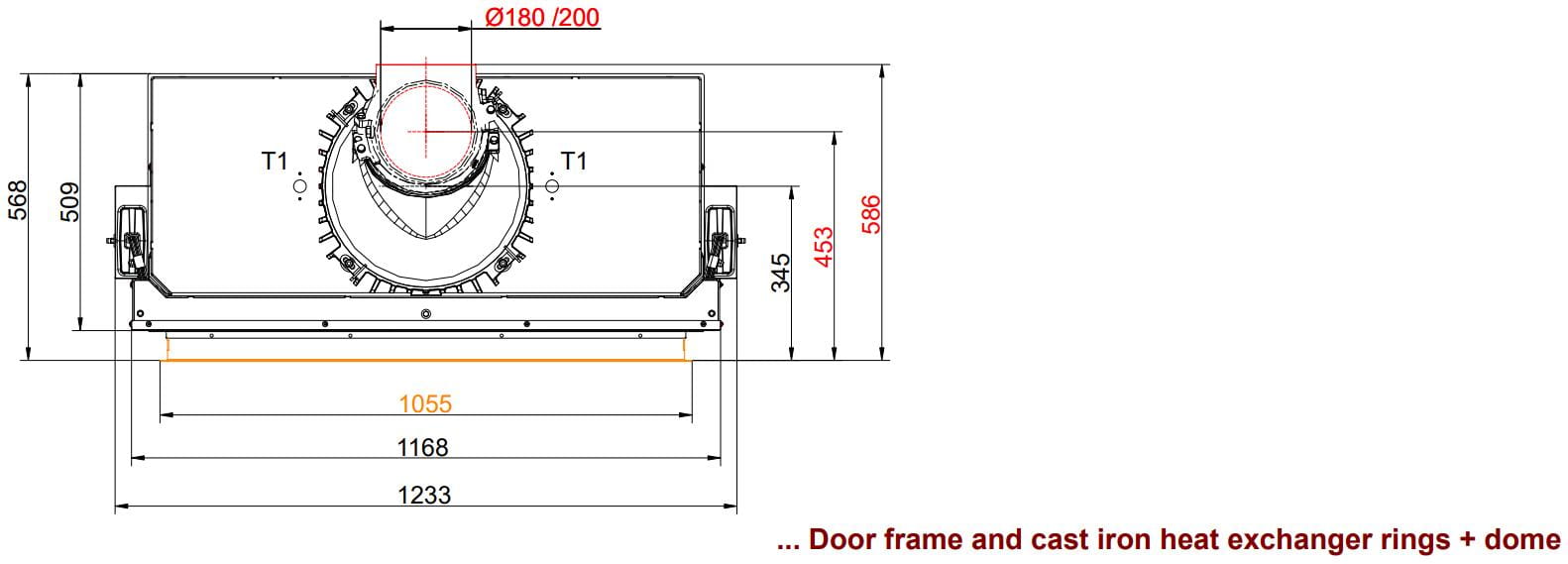 - Чугунный дымосборник с теплообменными кольцами — быстрый нагрев и быстрая отдача тепла в помещение. Высокая мощность конвекции в небольшом пространстве.