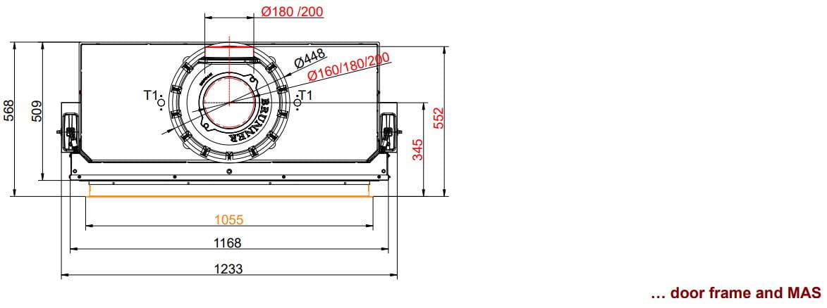 В серии топок Brunner BKH 5.0 Flat покупатель может выбрать обрамление двери по своему усмотрению. В случае двери с подъёмным механизмом — чёрная монтажная рама глубиной 60 мм, что делает примыкание топки к облицовке практически незаметным, или дверная чёрная рама, значительно выступающая по периметру. Если приобретается топка с боковым открыванием — выбор между монтажным кронштейном и чёрной дверной рамой.