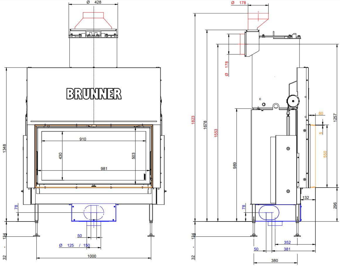 Также все модели Brunner имеют возможность подвода воздуха на горение извне (из соседнего помещения или улицы).