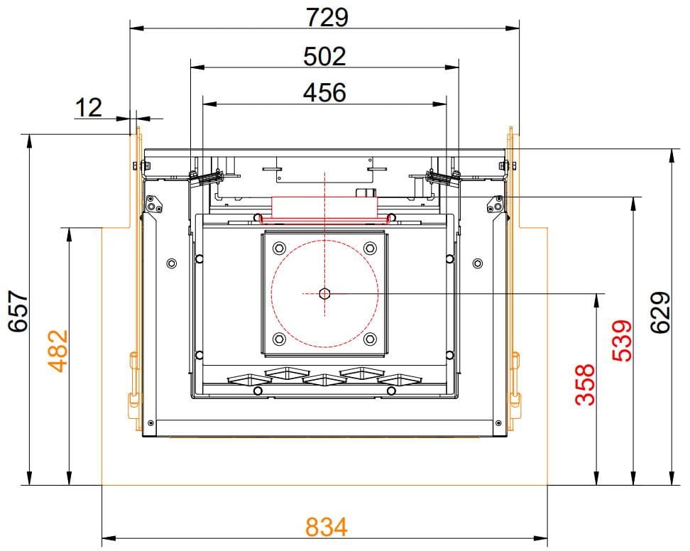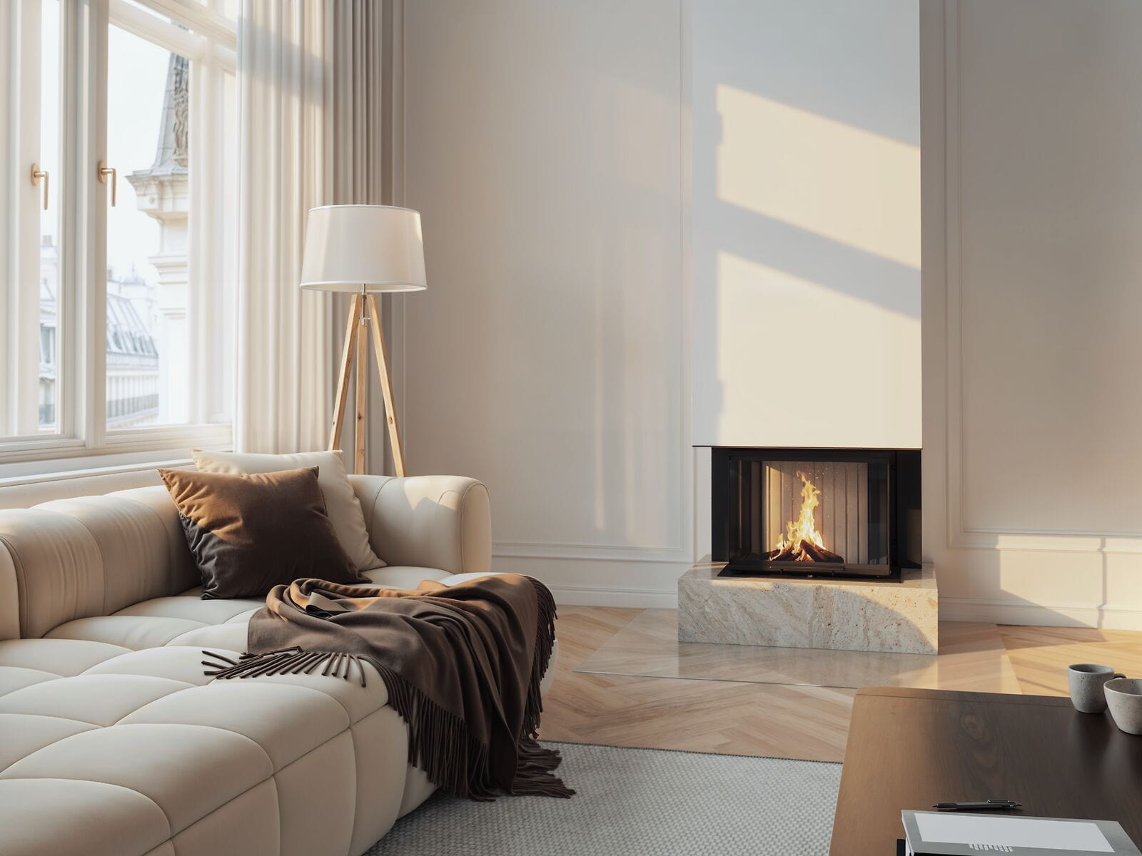 Абсолютное большинство тепловых лучей проходит через керамическое стекло в помещение. Расстояние для размещения мебели или горючих элементов от топки должно составлять не менее 120 см.