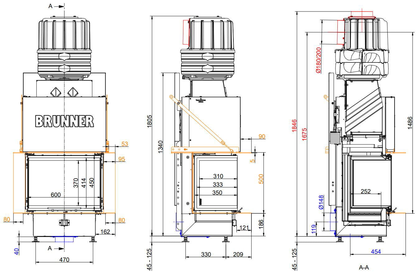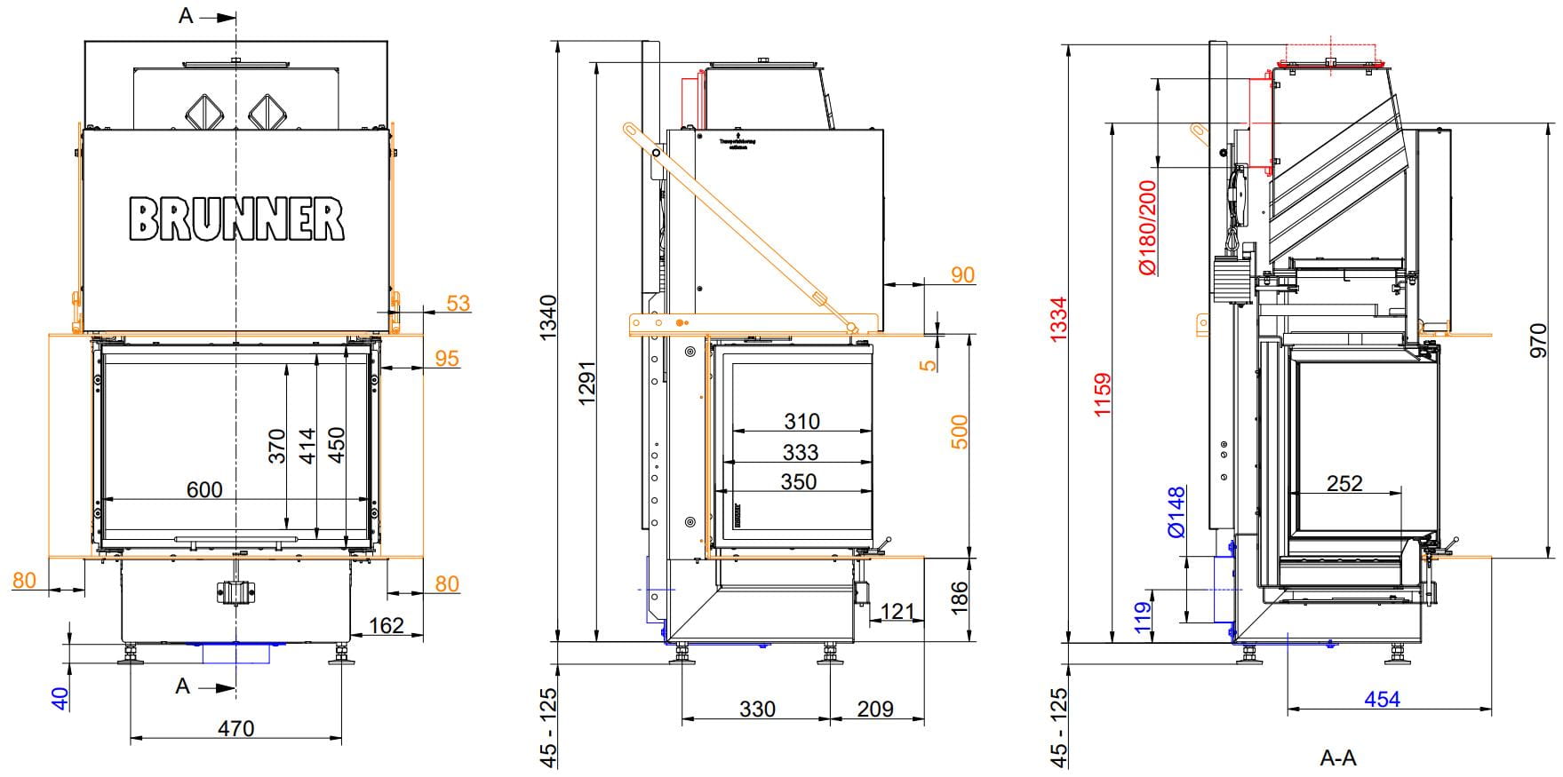 Также все модели Brunner имеют возможность подвода воздуха на горение извне (из соседнего помещения или улицы).