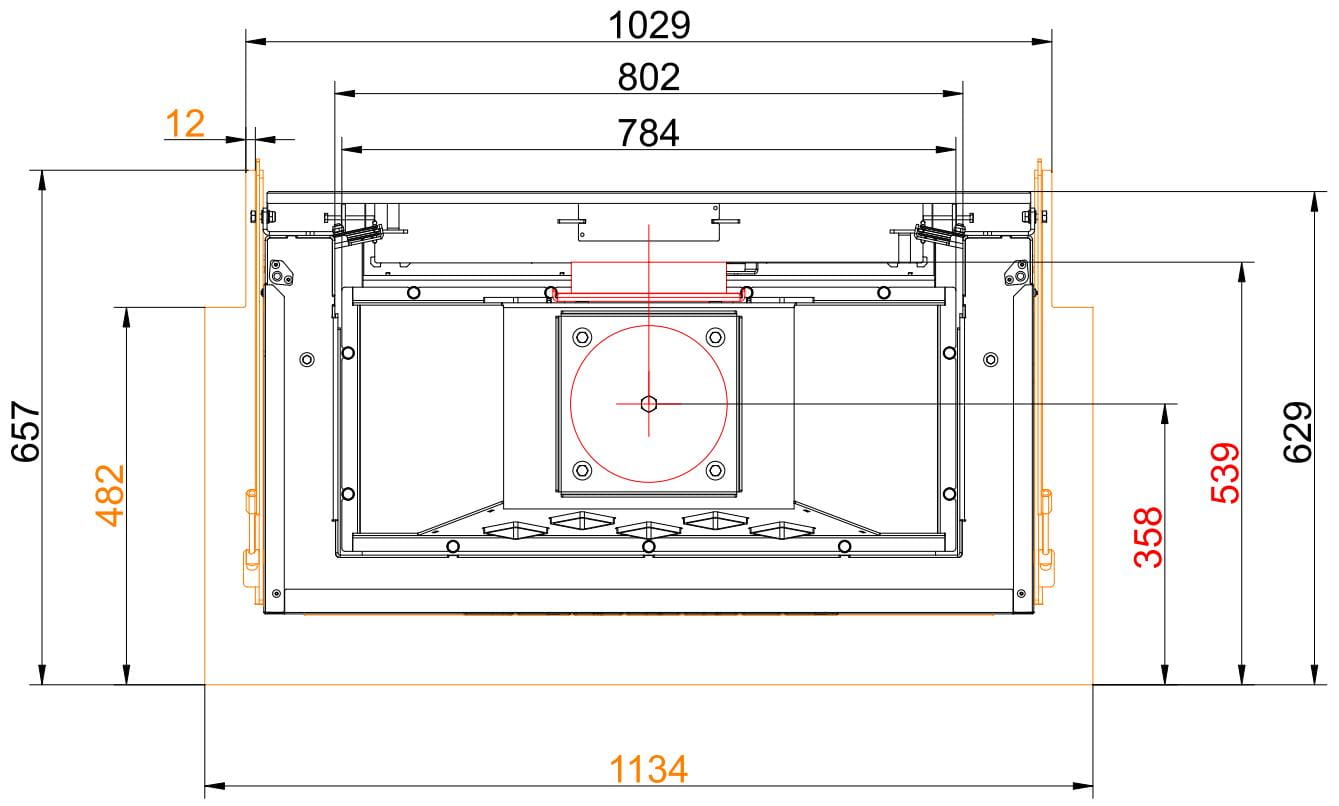 Абсолютное большинство тепловых лучей проходит через керамическое стекло в помещение. Расстояние для размещения мебели или горючих элементов от топки должно составлять не менее 120 см.