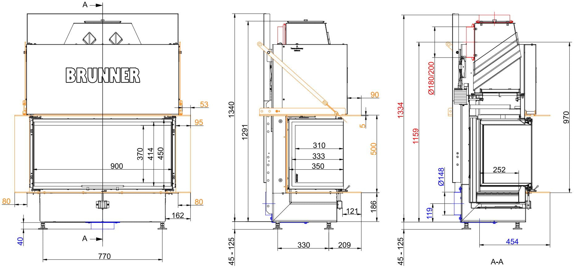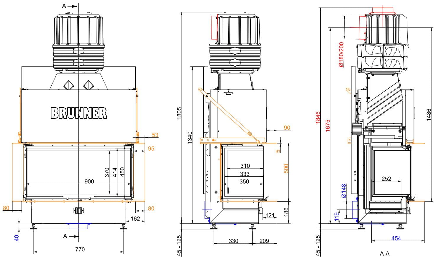 Также все модели Brunner имеют возможность подвода воздуха на горение извне (из соседнего помещения или улицы).